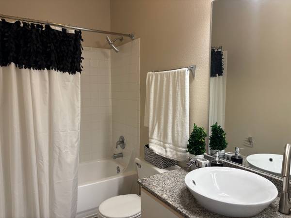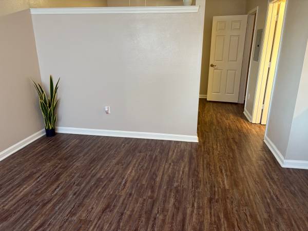 Dark vinyl wood flooring throughout, all major white appliances, rainforest showerhead, PLUS MORE!