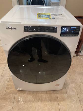 Whirlpool 4.5 cf Front Load Washer with Steam, Quick Wash in white. Brand new control panel excellent condition fully functional with minor cosmetic blemishes. Retails over $900 for sale $350.