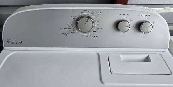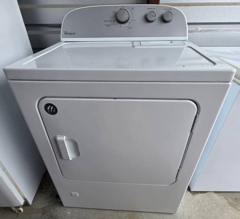 Whirlpool 7 cu. ft. Gas Dryer Mod: WGD4815EW2 Ser: M81526839 Type: BWSR-NAT-1206006-FM22 Dim: 28.2"d x 43.375"h x 29"w Includes gas line and vent hose