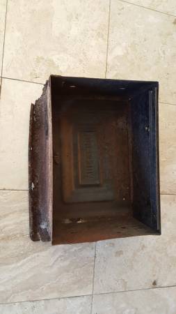 The plantation and all attached outbuilding burned in the late 1920's but this antique ash pit door survived among the remains found of the old plantation brick-making and blacksmith forge operations. I have not otherwise tried to clean it -- but it doesn't really need it. It dates from the late 1800's or early 1900's -- at the latest. The chute door and inset are really eye-catching and distinctive -- a very unique piece.