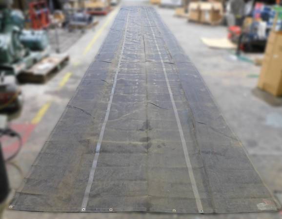 Selling one (1) new unused mesh dump truck trailer tarp. 50' long x 7' wide. Item is new. A little dusty/dirty. There are no signs of tears or rips in the tarp. The sale of this material is “as is,”...