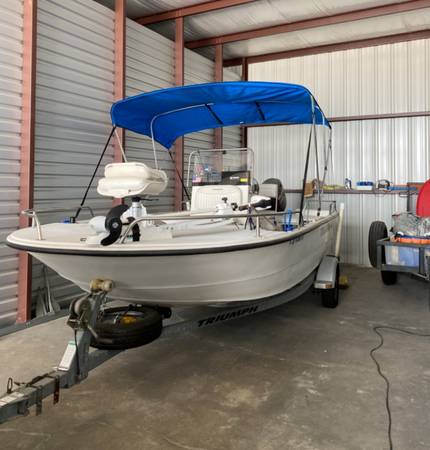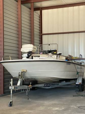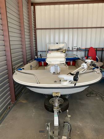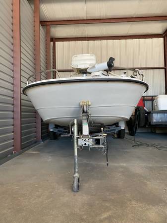 17FT TRAILER, new tires, batteries are good,..low hours, includes a Lowrance Elite 7 w card. Recent service. Indestructible propoline hull. Stored in an enclosed storage facility. Two 13 Gallon tanks, live well, 55lb Minn Kota Riptide with built in battery charger