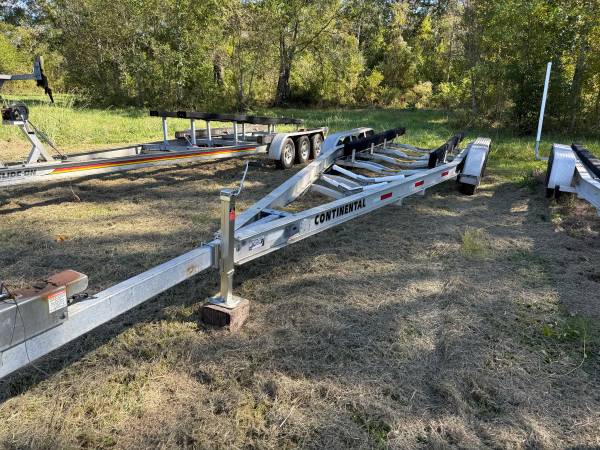 Great condition triple axle Aluminum I Beam boat trailer. Each axle is rated for 6k lbs. All hubs, seals, and bearings replaced with less than 2k miles on them. Trailer will fit a 28-31ft boat....