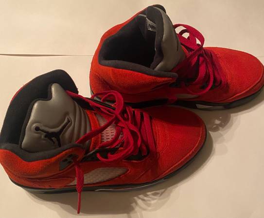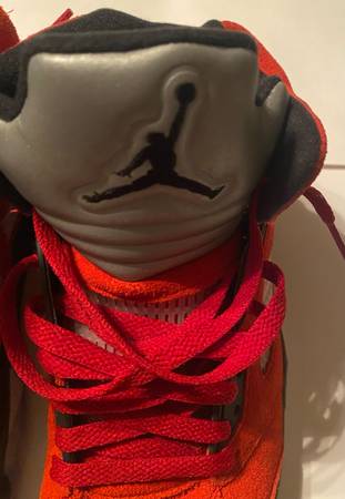 These Air Jordan Retro sneakers are a red suede upper material accented with classic Jordan branding for a retro feel. Sneakers were released in year 2021. Item is preowned and in excellent condition with minimal wear. Perfect for men and great for adding a pop of color to any outfit. This item comes in the original box. Color is varsity red/black-white. Please email or text me with any questions. Thanks