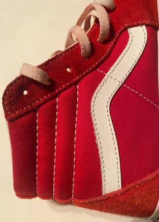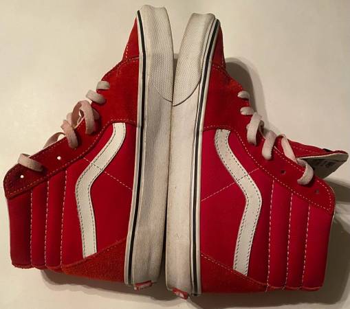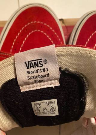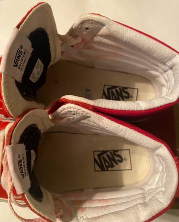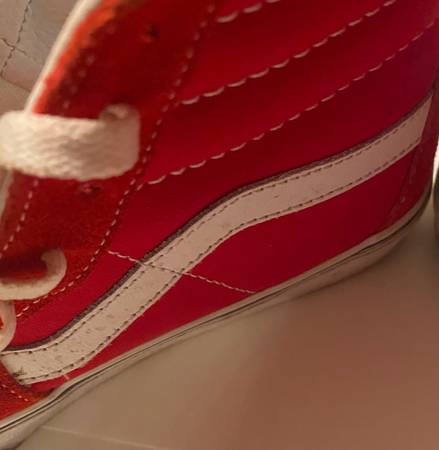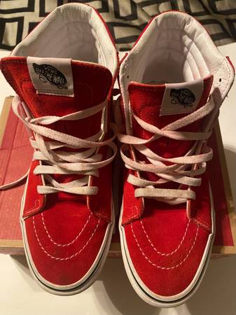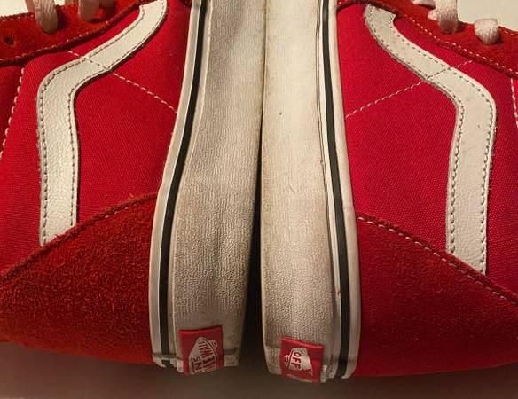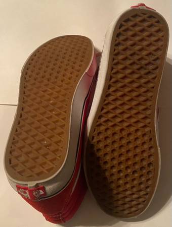 VANS Sneakers (Old Skool Red) size 8. These shoes feature a stylish brand logo and are made for those who want to stand out in a crowd. They are crafted with a low-top shoe shaft style. Perfect for men who want to stay comfortable while on the go. They could be worn for athletic or casual activities. Shoes are preowned and in excellent condition with minimal wear. (The strings and inside have red faded color on them from the red suede of the shoe) The release year is 2020. If you’re interested please contact me via email, phone or text with any questions. Thanks