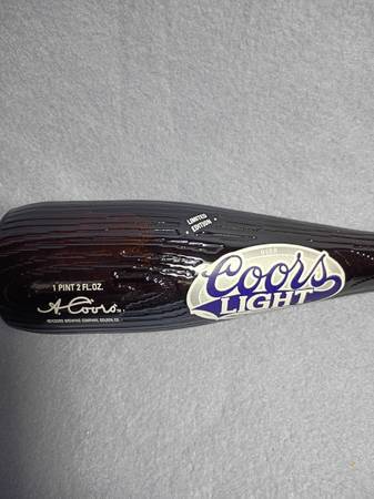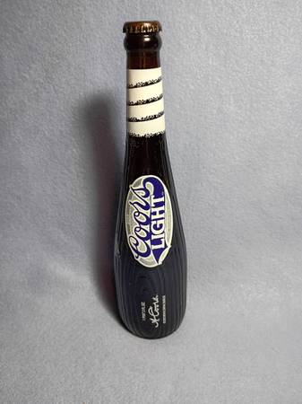 This is an unopened limited edition Coors Light bottle which was made to resemble a baseball bat. It was introduced in 1996. Hard to find full bottle!