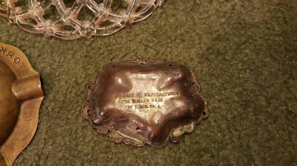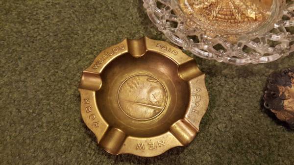 The final piece if a brass ashtray from the 1969 World's Fair in NY and reads: NEW YORK WORLDS FAIR 1939