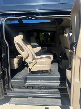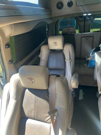 9 passenger van Tv, dvd player, captains seat, rear seat recline to a bed.