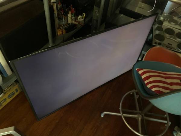 Has uniform gray screen (shadows in pic are from nearby items). All LEDs light up. I installed a new T-Con Board which didn't fix it so perhaps it requires the software update I read about. I don't...