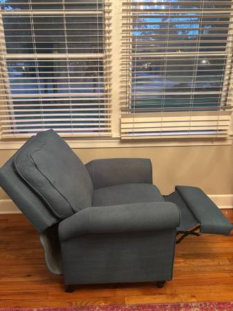 Caribbean blue, stuffed reclining chair. Has dirt and wear from dogs but can be cleaned. Will throw in slipcover of same color (not pictured). Height: 39", Length: 33", and Depth 40". Listings below are priced from $372. Pick-up only with cash, Zelle, or Venmo.