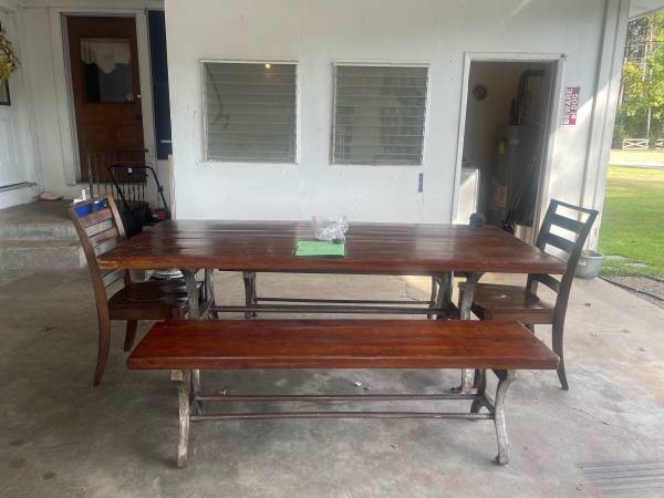 Farm style table iron legs length is 7 ft width is 40 inches asking 300 obo call tabby