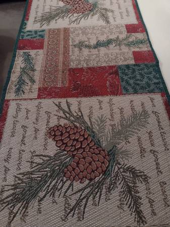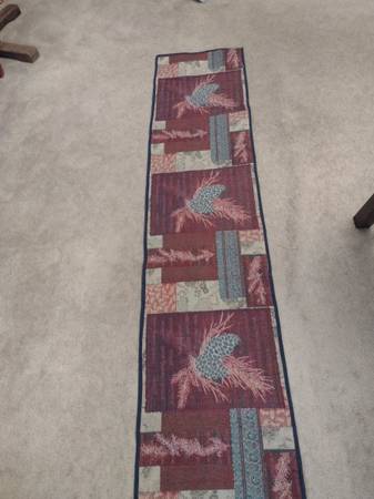 Beautiful table runner which is reversible and measures approximately 72" long and 12 3/4" wide. Excellent condition!