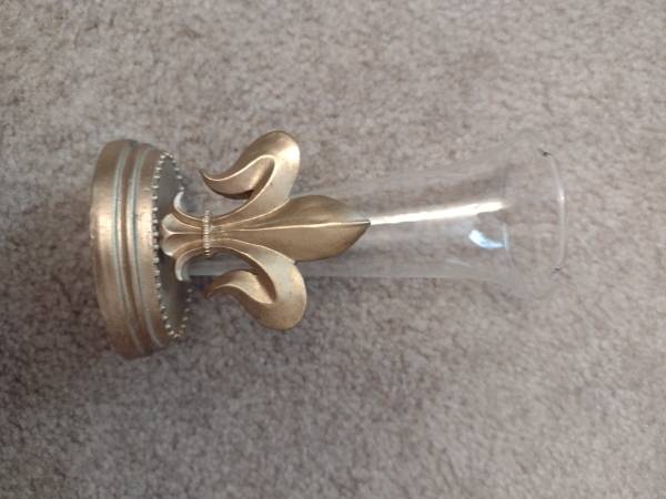 Very cute small bud vase with fleur de lis! Approximately 5" tall and the base is 1 3/4" x 2 1/2"