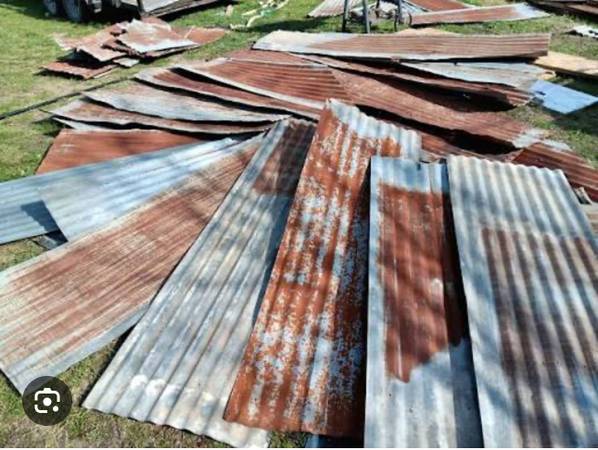Rustic roof tin with a true aged look is available for $1 per linear foot. The condition is great.