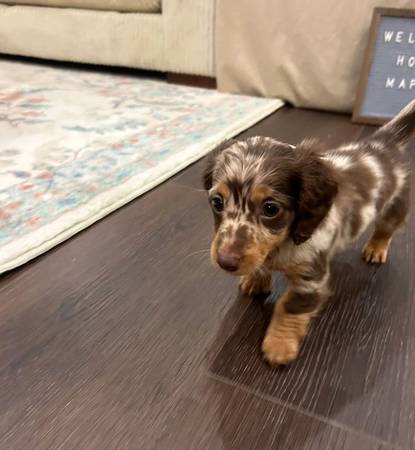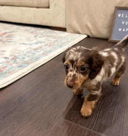 Male female dachshund puppy needs a forever home, 8week old first shots and de-worming great around children . text me