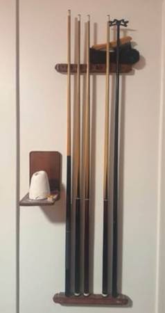 This is a full size, 8ft, pool table, with a real marble top. It’s 3 pieces, table top, and the legs are two pieces, will need help moving as the top is pretty heavy and will need to turn it on its side to get it out the door. Comes with 5 cue sticks, all 16 billiard balls, 8-Ball and 9-Ball Racks, Hand Chalk, Blue and Orange Chalk for Cue Sticks, Cue Holders, and 2 brushes for the table. Only thing wrong with it is a piece of one of the decorative corners is missing, but does not harm the table itself.