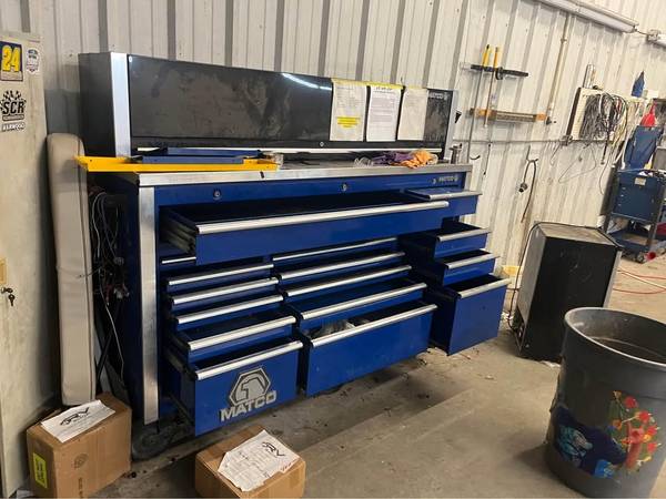 Selling a very large Matco MB8535 3 bay toolbox with optional stainless top. This thing is a beast with 6) 7" diameter wheels. Does not include horizontal locker or tools.