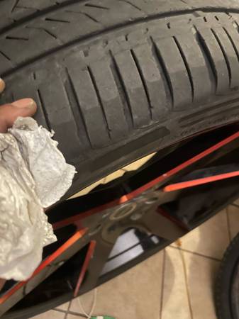 The rims themselves are in flawless condition. There are no cracks, no scuffs,and no previous welding repairs of any kind. They have never been curbed, scraped, or damaged, and the finish is still in excellent shape with no fading, chipping, or peeling. They may require a bit of dusting due to them being put away for some time. However, these rims have been extremely well taken care of. The tires are in outstanding, like-new condition with very minimal tread wear—they’ve only been lightly driven on and there are no punctures, no patches, no dry rot, and no sidewall damage whatsoever. They’ve been properly stored and maintained. These tires hold air perfectly with no leaks and are mounted and balanced on the rims, ready for immediate use.