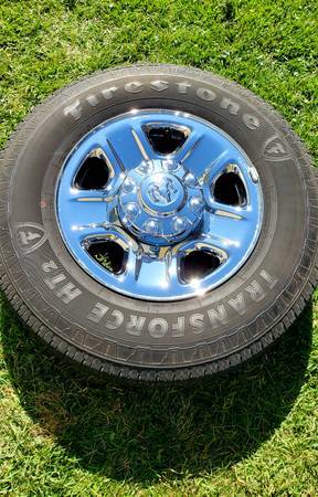 2025 Dodge Ram 2500 OEM Take Offs - Set of (4) Chrome 18 inch wheels. No curb rash. Only 1,500 miles. 95% tread remaining. OEM Firestone Transforce HT2 Tires LT275/70R18 Tire sensors, center caps,...