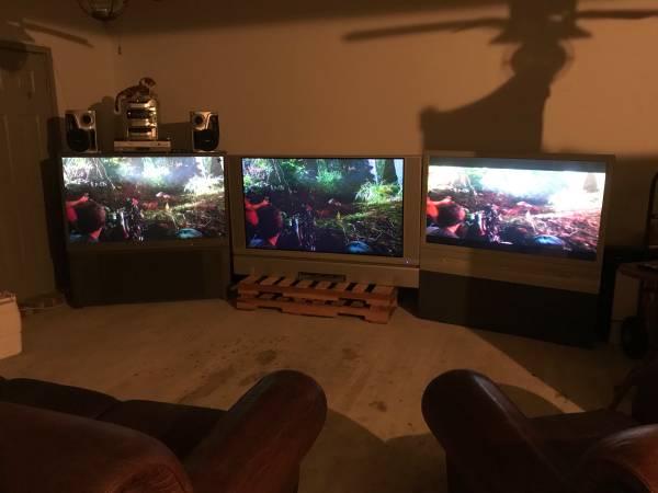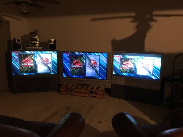 Free TVs to anyone who would like them. There are three (3) and they are quite large so you will need a truck and/or trailer and a helper in order to haul them.